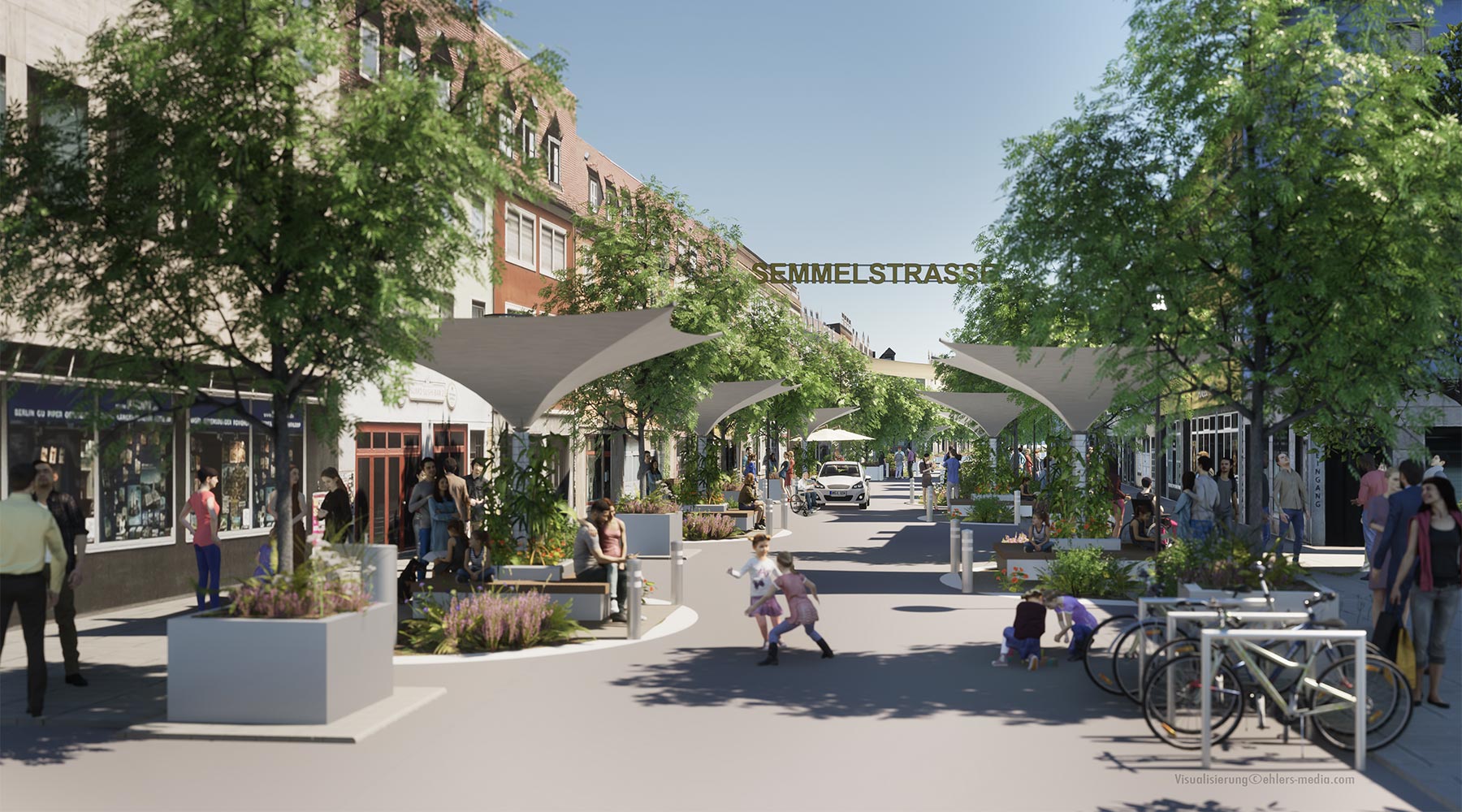 Ich stelle in dieser Ausstellung stadtplanerische 3D-Visualisierungen zur Klimaanpassung Würzburgs Fotografien vom Istzustand gegenüber. Es geht dabei vor allem um die Anregung des notwendigen Diskurses über die zukunftsfähige Transformation urbaner Räume. Die Hoffnung: Spekulatives Design und utopische Bilder können dabei inspirieren, Vorstellungskräfte aktivieren, Energien freisetzen, im Idealfall Menschen mit einem gemeinsam entwickelten Blick nach vorn verbinden.